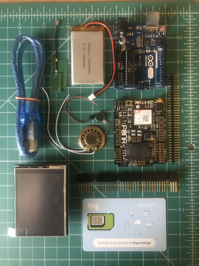 This is our working cellphone we built ourselves!  It can make calls and receive calls on the 2G cell network and has a TFT touch screen (https://en.wikipedia.org/wiki/TFT_LCD).  We want to update it to use a more modern network like 3G or 4G and also want to figure out how to do text messages.  It was built using an Arduino (https://www.arduino.cc/) and a Fona 2G card.