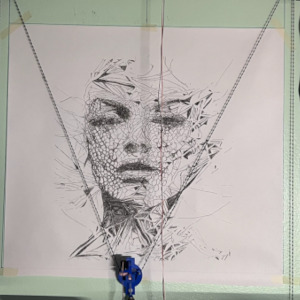 This is our drawing robot, it is able to draw images 3’x4′. It is a type of plotter called an polar plotter (https://en.wikipedia.org/wiki/Polar_plotter). It uses an Arduino (https://www.arduino.cc/) to take commands from a computer and control the motors. The image is created in a vector format and then is processed into a list of X/Y…