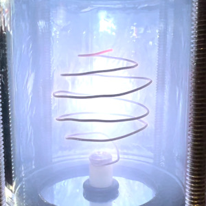 Here is the Farsworth fusor we built. The system runs at 6kv and a vacuum below 10microns. We built everything from scratch including the shield and rectifier. I made the top and bottom aluminum plates from a piece of bar stock. Below is some information from wikipedia on fusors (https://en.wikipedia.org/wiki/Fusor) A fusor is a device…